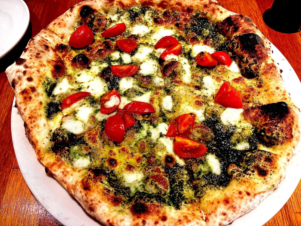 こじんまりとした店内は落ち着いた雰囲気で、石釜から漂う香ばしい匂いが食欲をそそります。注文したのはジェノベーゼピザ。