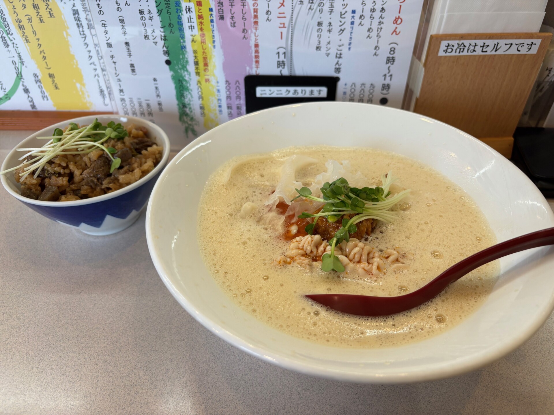 白子を使った泡担々麺でピリ辛の白子辣油がいいアクセントになっていておいしかったです。