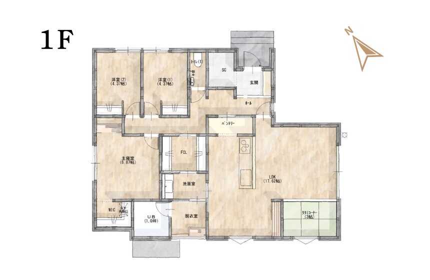 間取り:3LDK+タタミコーナー(3~4人暮らし向け)