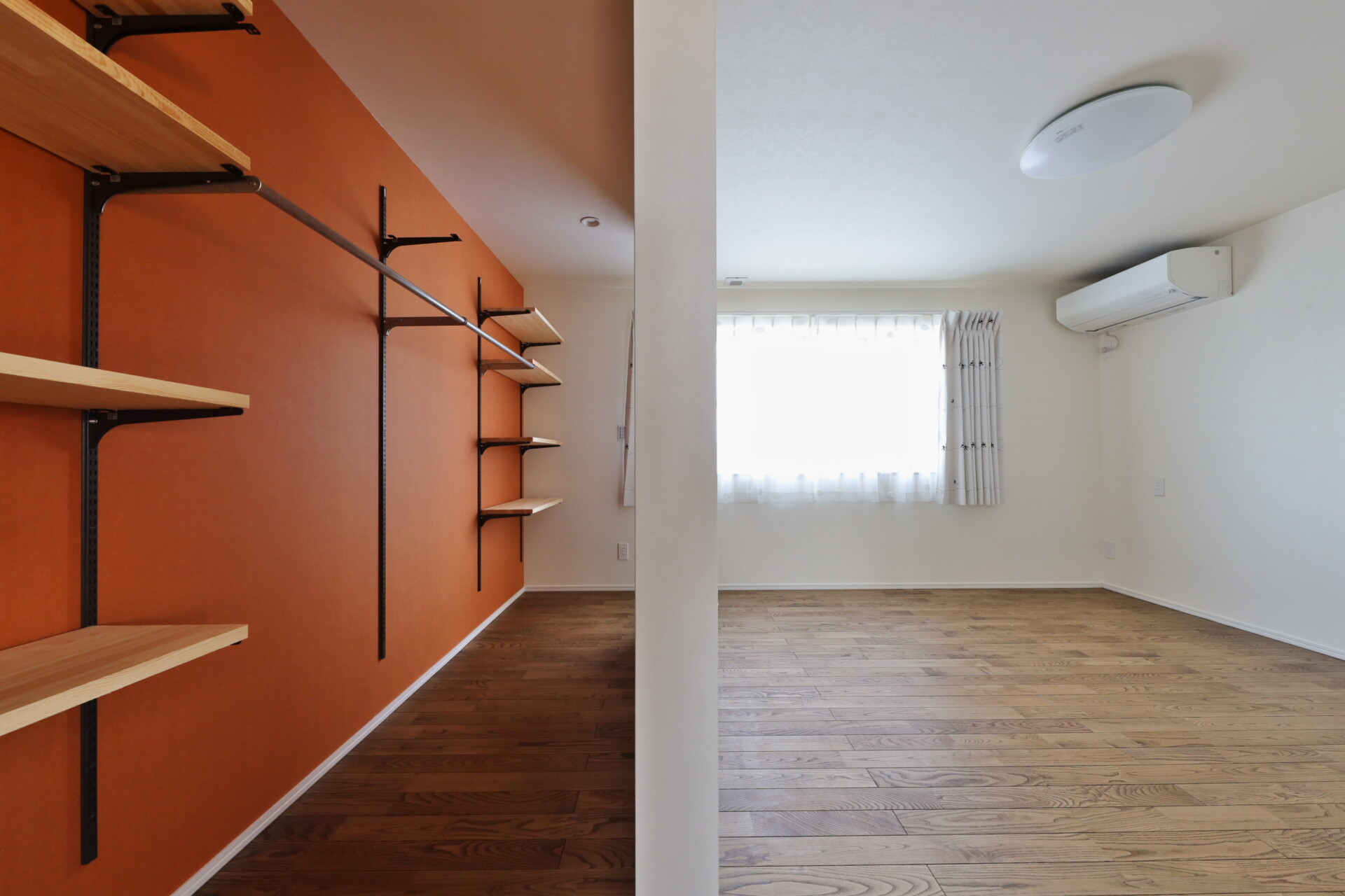 2階の大容量ウォークインクローゼットには、家族全員分の衣類の収納を目的としています。