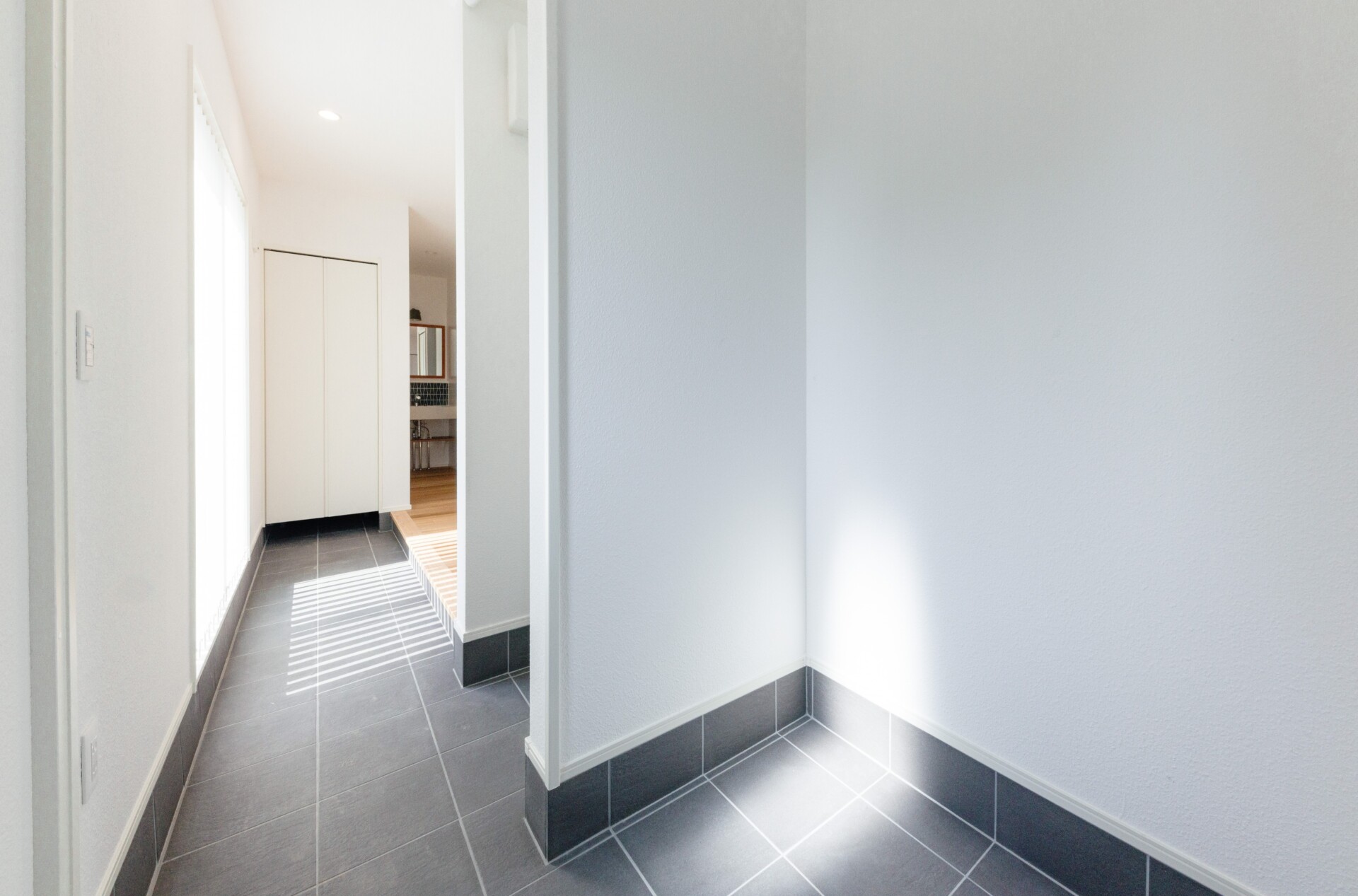 LDKまで続く玄関土間。帰宅して一直線にキッチンのそばまで行けるので便利です。