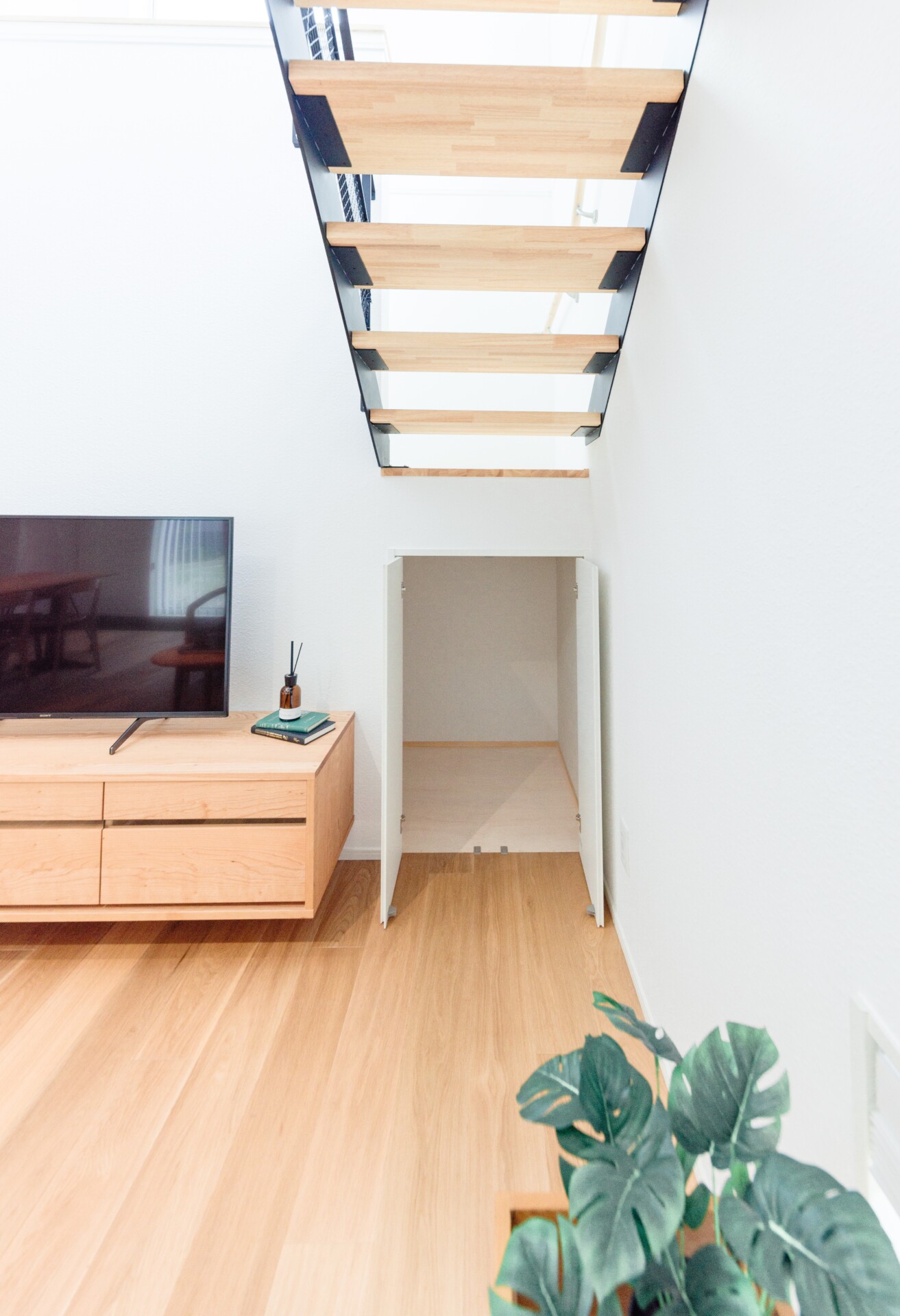 階段下収納をはじめ、リビング収納やパントリー、ファミリークローゼットなど、適材適所の収納スペースがあります。