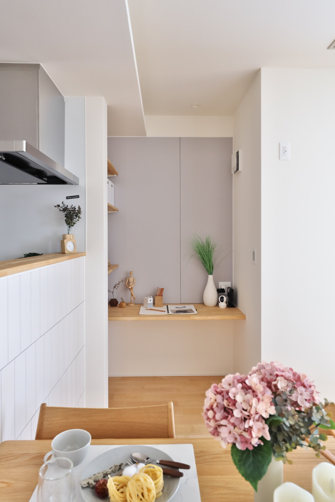 リビングよりも天井を低くしているため、落ち着いて家事ができる空間になっています。