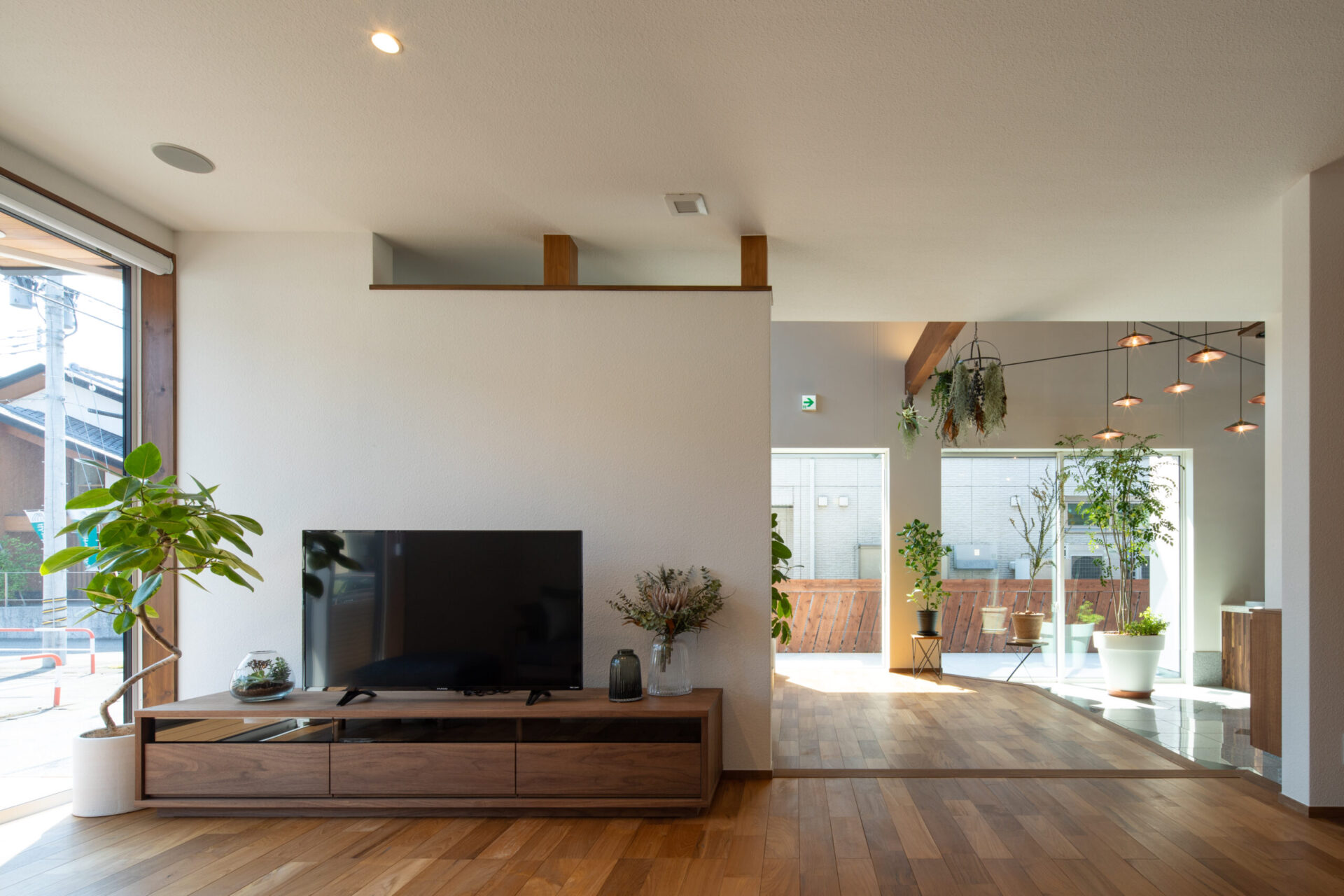 ボタニカルスタイルでコーディネートされた内観は、 自然素材とグリーンにこだわった家づくりを表現しています。