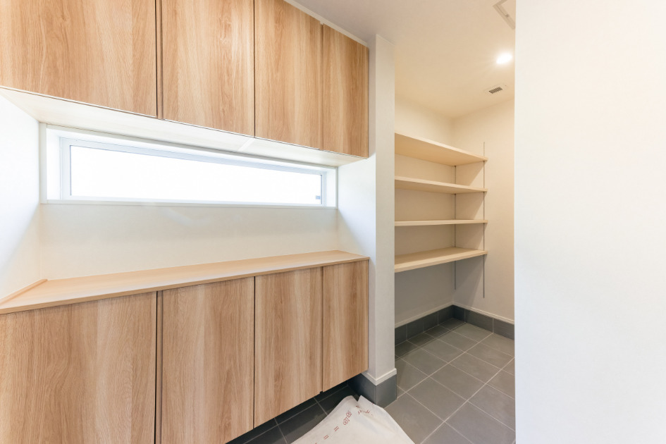 また、パントリーと繋げて、食材やちょっとした日用品の出し入れも手早く行える動線にしました。