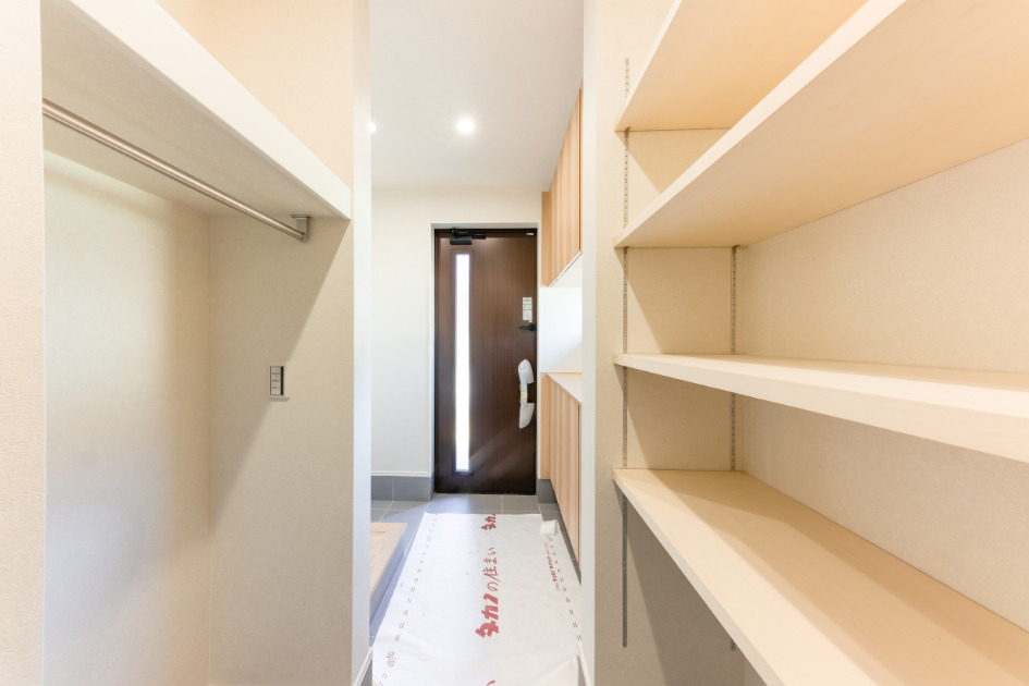奥側には上着や靴を収納できるシューズクロークが広がっています。