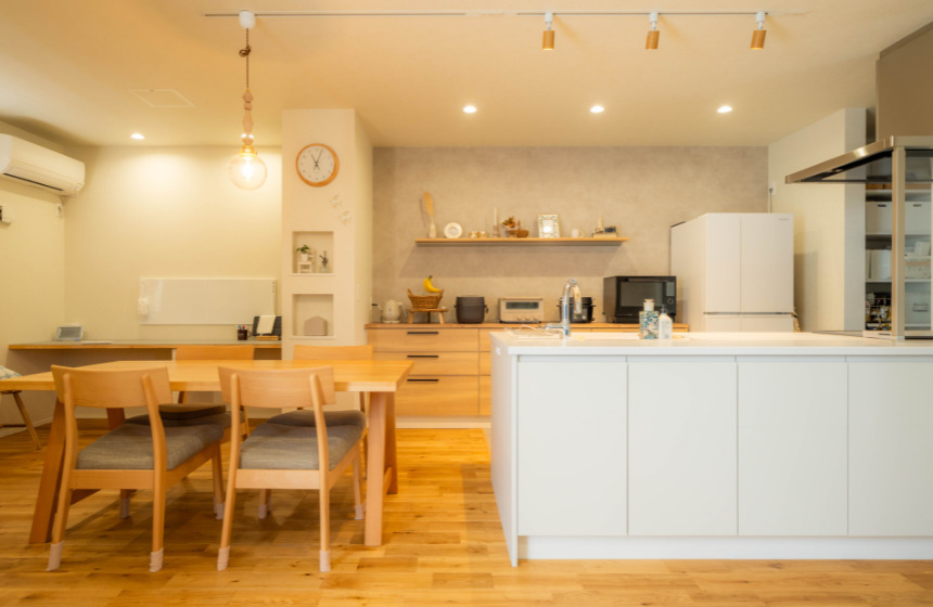 「キッチンとダイニングを横並びにすることで、配膳や掃除が楽にできるようにしました。