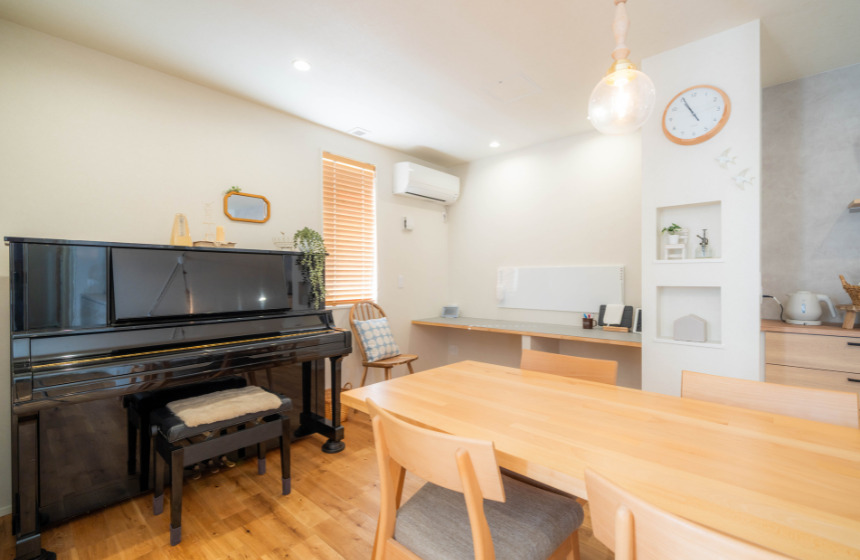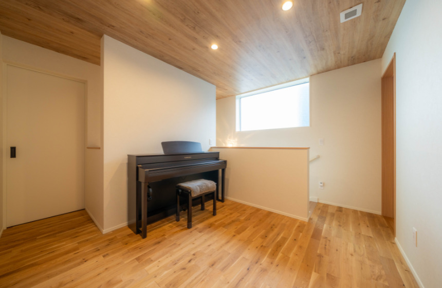「夫婦でピアノを弾くのが趣味なので、1階にはアップライトピアノ、2階に電子ピアノを置く前提で間取りを考えていました。
