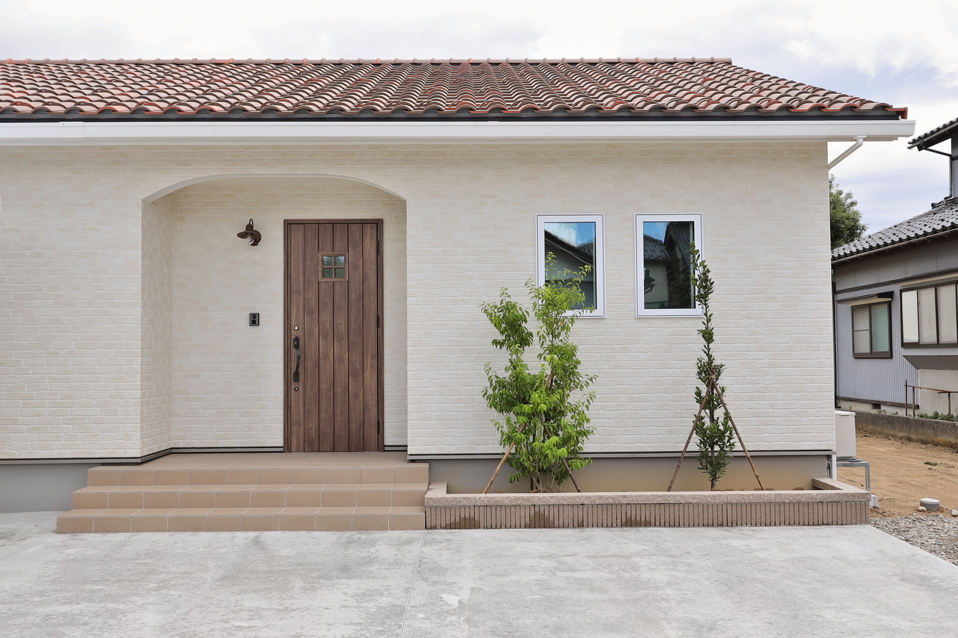 S字の洋瓦と玄関ポーチにRの垂れ壁、白を基調とした外壁など、外観は南欧風に仕上げました。